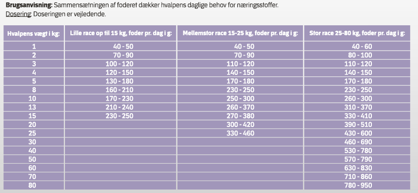 Såfremt de helt små hvalpe har svært ved at tygge foderet, kan pillerne opblødes i vand eller A38 inden fodring. Vi anbefaler dog, at foderet gives tørt så hurtigt som muligt, da hvalpen vil spise langsommere og tygge med tænderne. Når hunden bruger tænderne, dannes der spyt, der fremmer optagelsen af foderet.